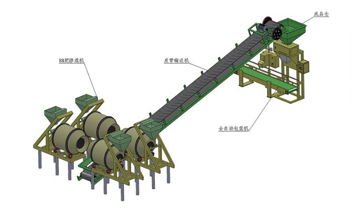本生產(chǎn)線主要包括:配料秤、分料器、爬斗提升機、混合機、電子定量秤、縫包機、輸送機、系統(tǒng)總控箱等。