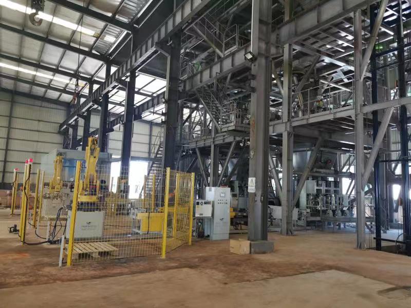 纖維素、膠粉等小比例貴重母料可通過電子秤計量投入外加劑料斗,與簡易型相比又先進一步因為混合機混合之后通過閥口袋包裝機或者敞口袋包裝機自動計量包裝。可使用皮帶輸送機運送至成品堆積區。它具有投資適中、建設周期短、投資見效快等特點。