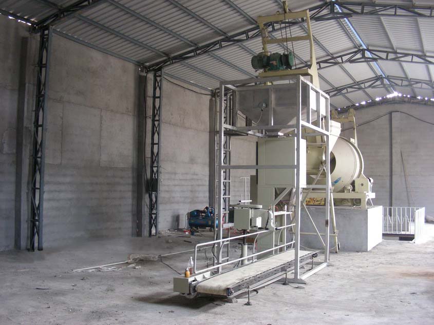 本生產線主要包括:配料秤、分料器、爬升提升機、混合機、電子定量秤、縫包機、輸送機、系統總控箱等。