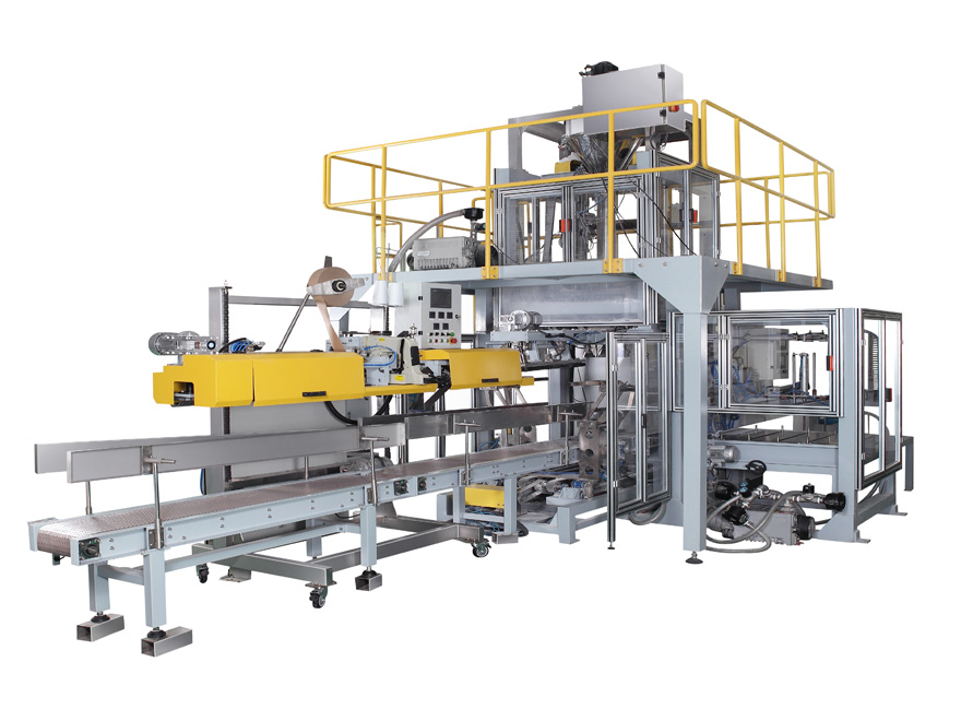 一、簡介:重袋全自動包裝機組是采用給袋式包裝,針對化工、農業、食品、糧食等行業小顆粒、粉狀物料而研制的新款包裝機組。該機組具有自動供袋、上袋、填充、封口、送包等功能,同時可以與各類物料設備聯動工作,實現大規格包裝無人化生產作業。