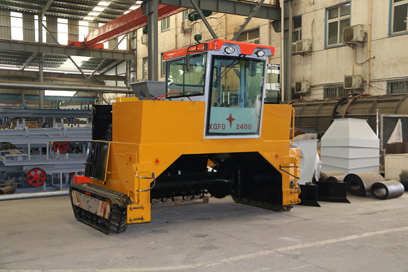 履帶式翻堆機是有機肥生產中的發酵設備,履帶式翻堆機的技術是集成了物料發酵后期的破碎功能,隨著物料的連續翻堆,刀軸能有效粉碎原料發酵過程中形成的結塊。生產中不需要額外的破碎機,大大提高了工作效率,降低了成本。